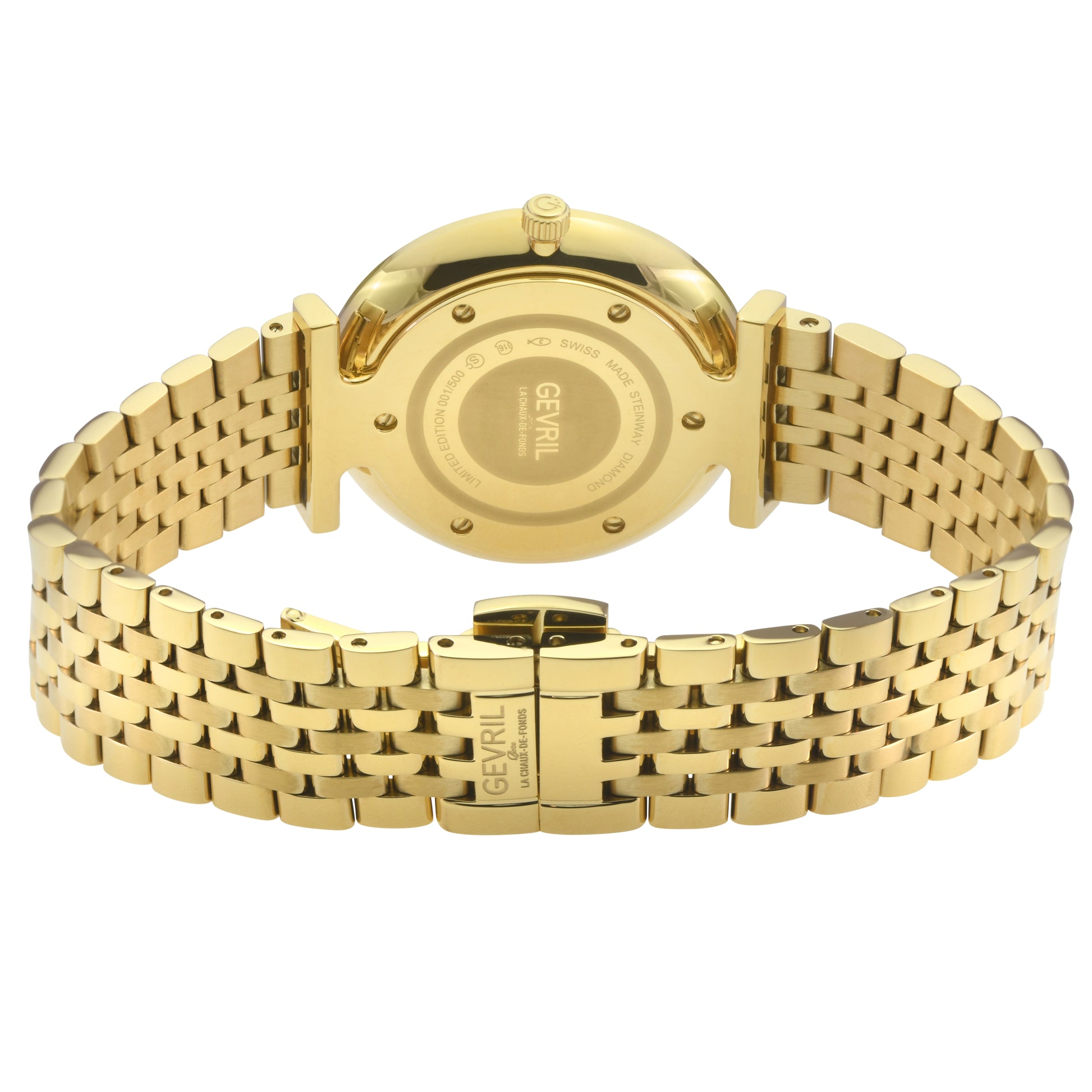 Behind its graceful form lies the mastery of Swiss craftsmanship: precise quartz movements, sapphire crystal clarity, and delicate finishes that transform time into an art form. Interchangeable straps offer individuality and style, while every detail speaks to Gevril’s enduring devotion to design integrity.